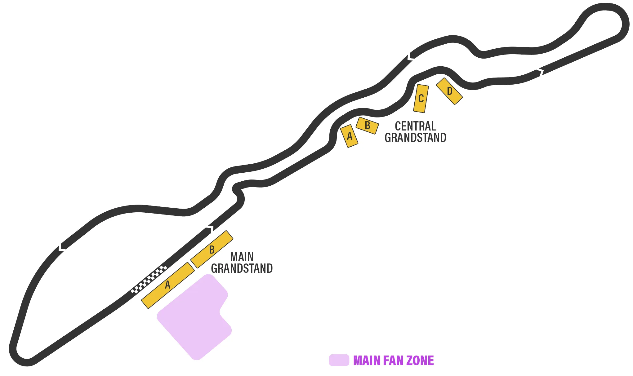 In addition to the on-track action, Grandstand B overlooks the pit and team buildings and provides partial views into the pit lane and garages, adding another layer to the experience. With sightlines across the grid and the start-finish straight, it’s a fantastic option for spectators who want to witness the race start, follow strategic moments, and enjoy some of the circuit’s most exciting corners in one place.